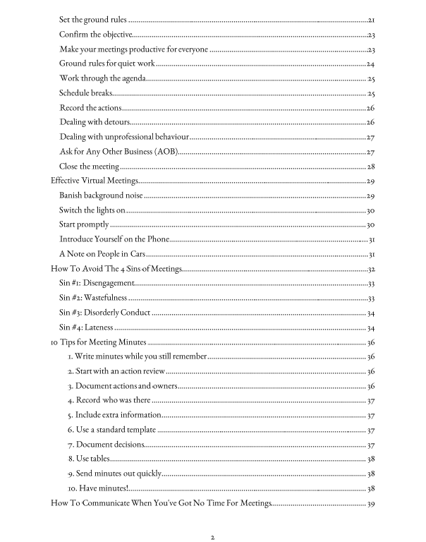 - How to Have Better Meetings is a 47-page ebook covering the types of meetings you'll have at work, plus advice on how to prepare for them, chair them, facilitate difficult moments, and follow up afterward.