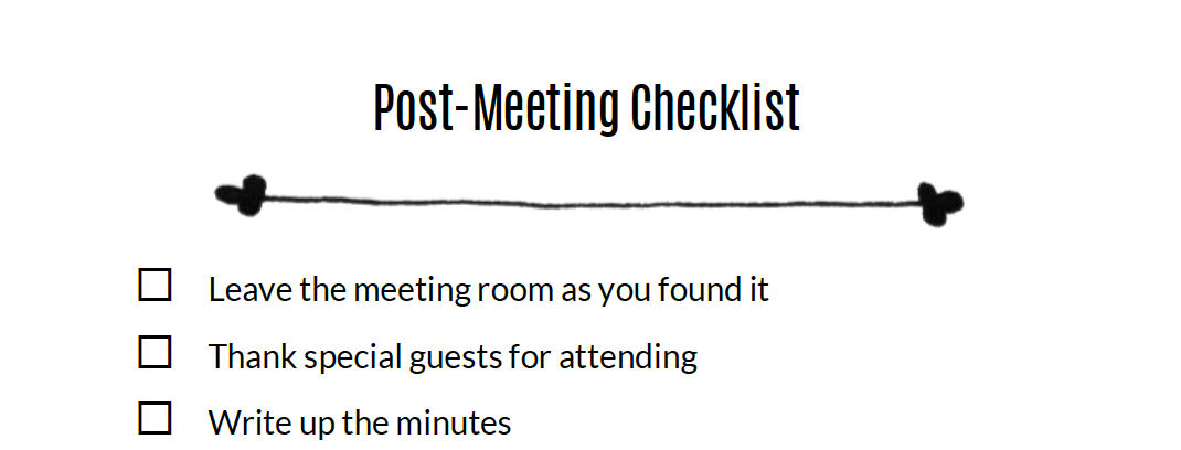 - A post-meeting checklist that you can use after your meeting to ensure everything is followed up appropriately.